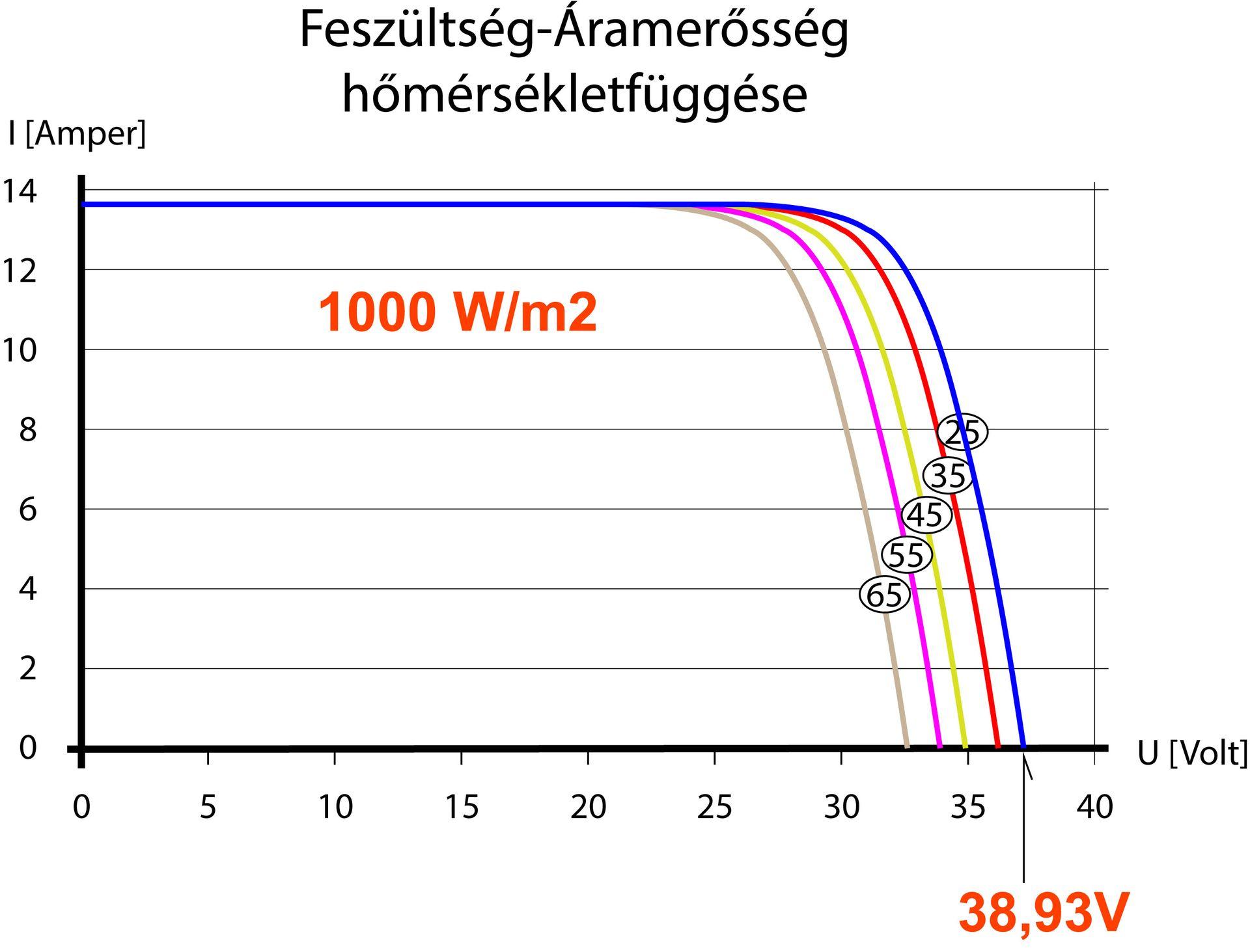 Látjuk rajta az előbbi Voc értéket és azt is, hogy ha a hőmérséklet emelkedik, csökken a Voc érték, de ha csökken a hőmérséklet, akkor pedig nőni fog! Ebből két dolog következik: