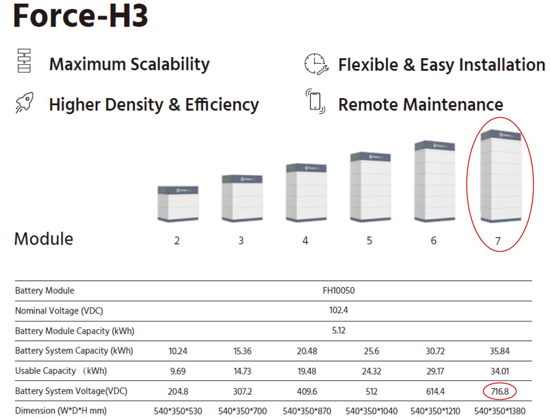 - a Pylontech Force-H3 5kWh-ás, 1db-os szekrény feszültsége túl alacsony, min. 2db szülséges, míg a 35kWh-ás, 7db-os szekrény feszültsége túl magas, max. 6db köthető rá,